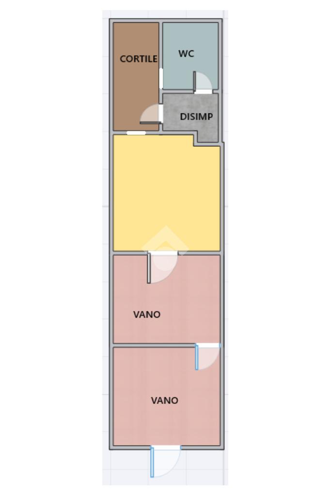 La casa: semindipendente al piano terra di un palazzetto di antica costruzione. Ingresso su un salone, un vano non disimpegnato a seguire ed una cucina con affaccio interno sul cortile di proprietà, disimpegno e bagno. Le condizioni della casa sono buone, il bagno rifatto da pochi anni, impianto elettrico in ottime condizioni ed anche gli infissi recenti. La casa necessita solo di pitturazione, e la mobilia.