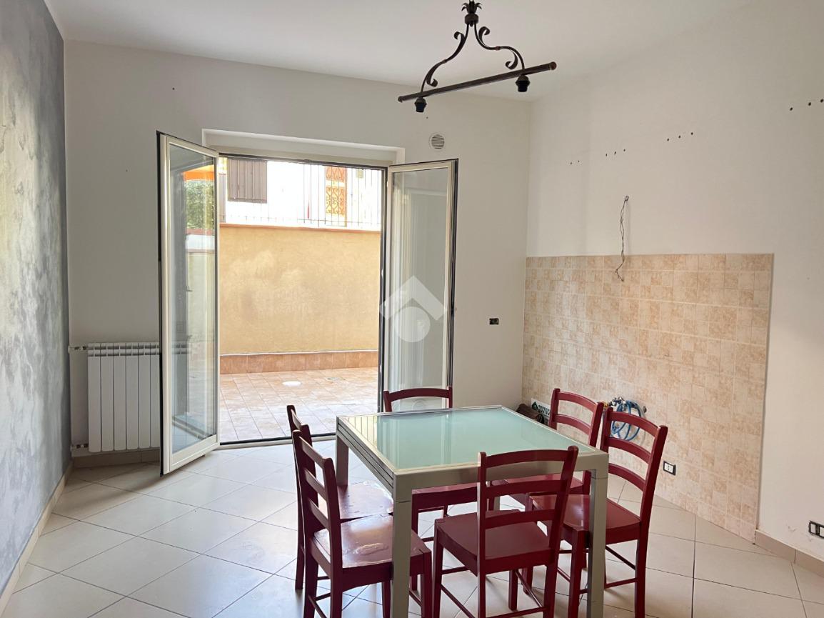L'appartamento: Fa parte di un piccolo contesto costruzione anno 2010, l'accesso da scale che portano al primo piano sottostrada lato ovest dello stabile, dal lato est, altra esposizione della casa, la casa espone sul cortile condominiale ed è piano primo. Il cortile di pertinenza esclusiva è di mq 25, la cucina soggiorno con allaccio del metano già esistente, corridoio, camera e bagno. La camera è ampia e finestrata, dal bagno e dalla cucina è accessibile il cortile. L'immobile è in ottime condizioni, sia dal punto di vista degli impianti che dellerifiniture e si presenta già abitabile. La pavimentazione è in gres, gli infissi alluminio doppi vetri e l'impianto di riscaldamento autonomo. A completamento della vendita, un posto auto di proprietà su strada.