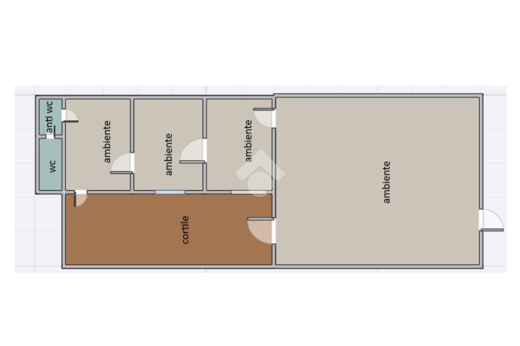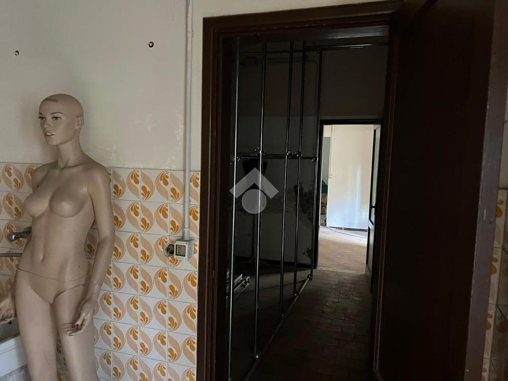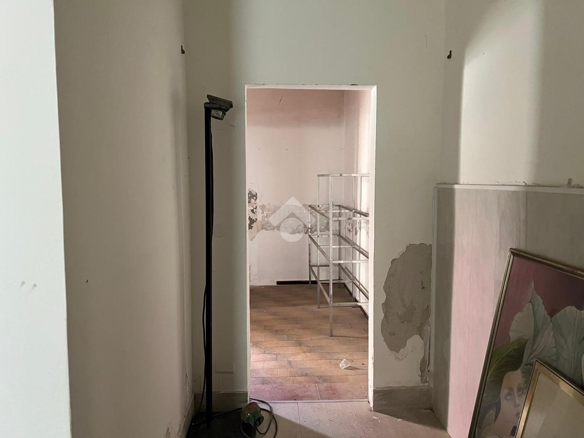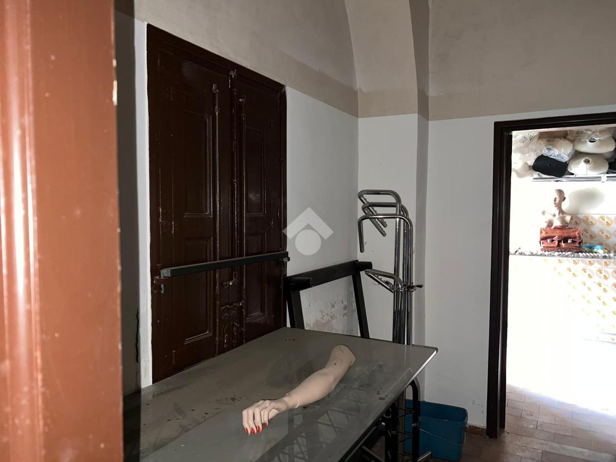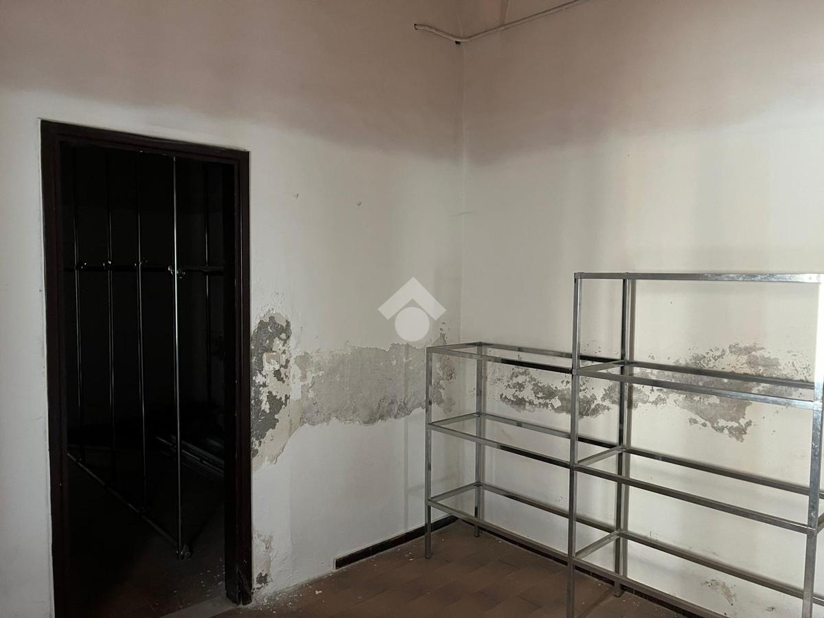 La bottega: al piano terra da 97 mq calpestabili unica luce, l'ingresso è su un ambiente di 60 mq, in sequenza altri tre ambienti, antibagno e bagno. Dagli ambienti è accessibile un cortile interno di circa ventidue metri quadri. Le condizioni della bottega sono da ristrutturare, da rifare l'impianto idrico, da rivedere l'impianto elettrico che nel tempo è stato rifatto ma oggi da revisionare. Gli infissi sono in legno monovetro.