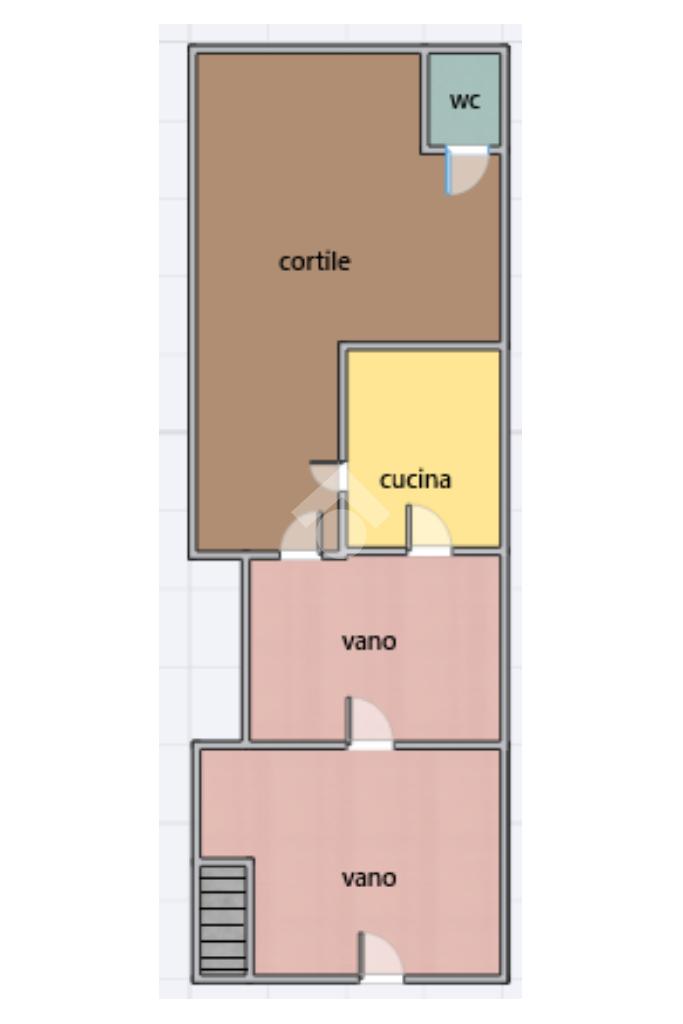 L'immobile: abitazione di vecchia costruzione semiindipendente posta al piano terra,composta da due vani disposti in sequenza. Dal secondo vano due porte, una sul cortile ed una sulla cucina con forno. Nel cortile è presente una parte coperta dall'abitazione sovrastante, con dei lavatoi, un tempo utilizzata come lavanderia. Nel cortile è presente la sagoma del vecchio bagno, ormai dismesso, che nasceva all'esterno della casa. La casa è da ristrutturare, le condizioni sono rimaste invariate negli ultimi 20 anni, eccetto per alcuni interventi di conservazione per evitare il deterioramento della casa.