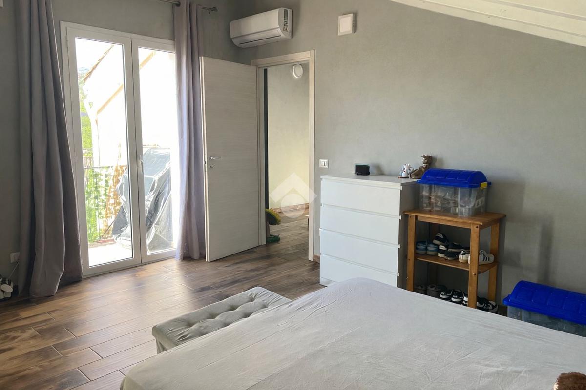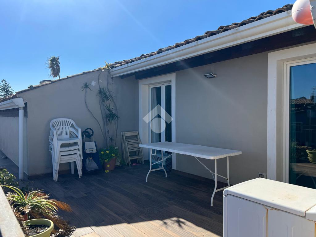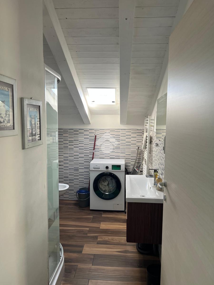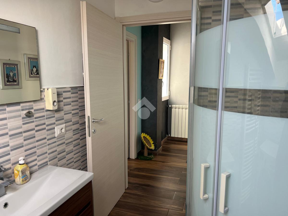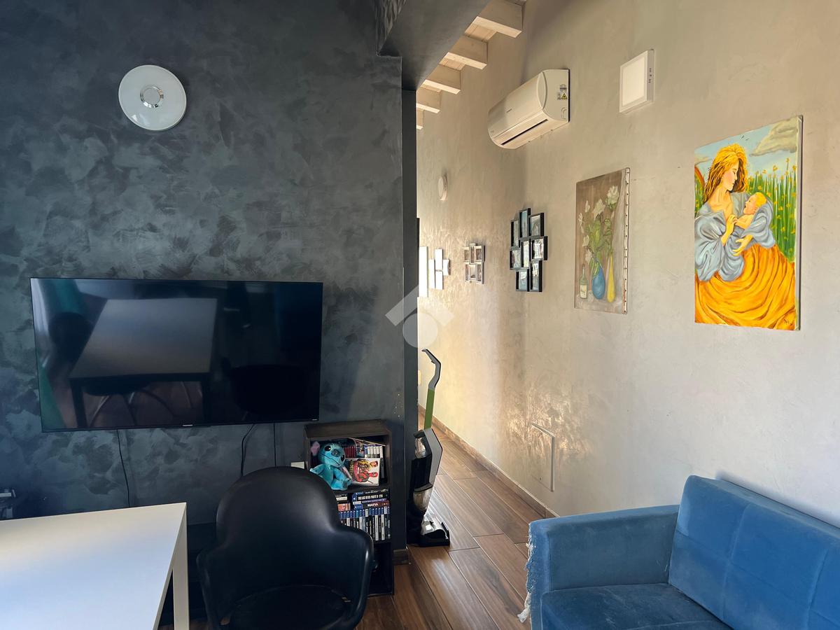 L'immobile: porzione di palazzetto con al piano terra garage e scala d'accesso, il piano primo appartamento vani 4 oltre accessori, al piano secondo due mansarde con terrazzi ristrutturato, oltre gli impianti elettrico e idrico moderni, anche Fancoil, condizionatori e impianto di riscaldamento autonomo, autoclave con riserva d'acqua, telecamere, luci d'emergenza e porte blindate. L'immobile è versatile e si presta come investimento, infatti le due mansarde che hanno accessi indipendenti dalla scala, sono già inserite nel circuito come B&B.