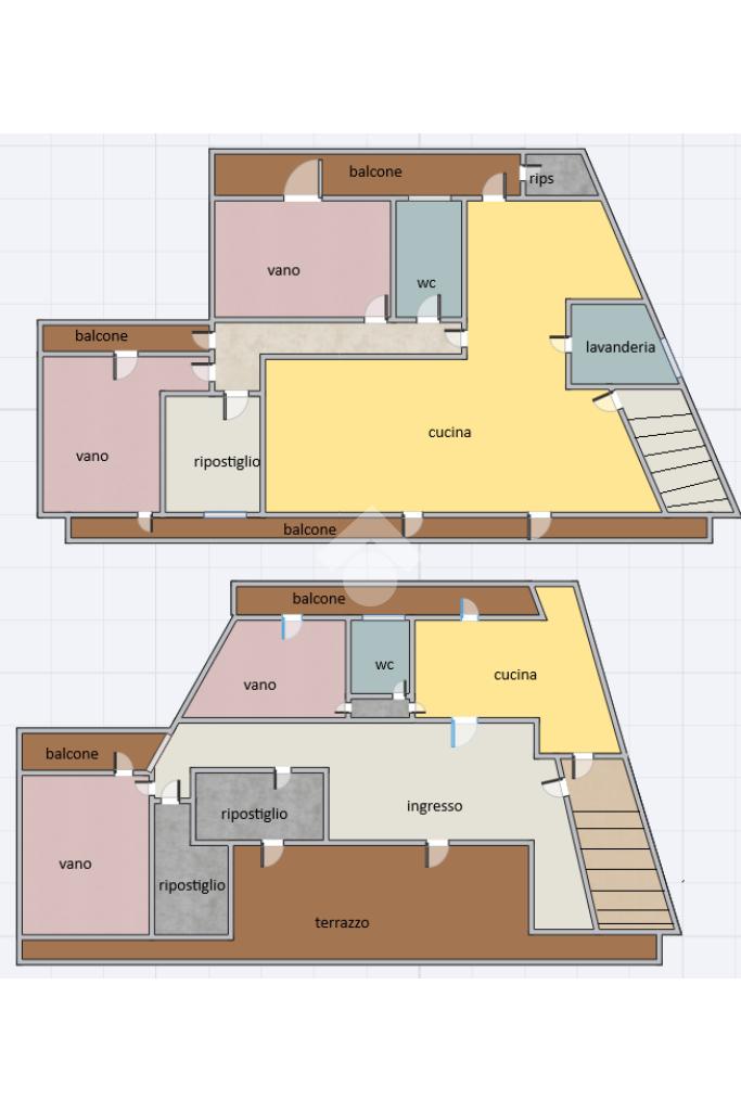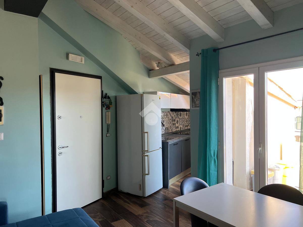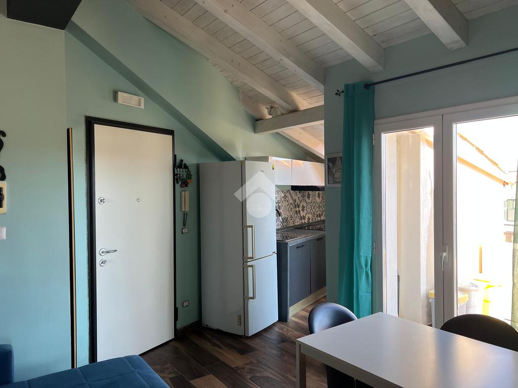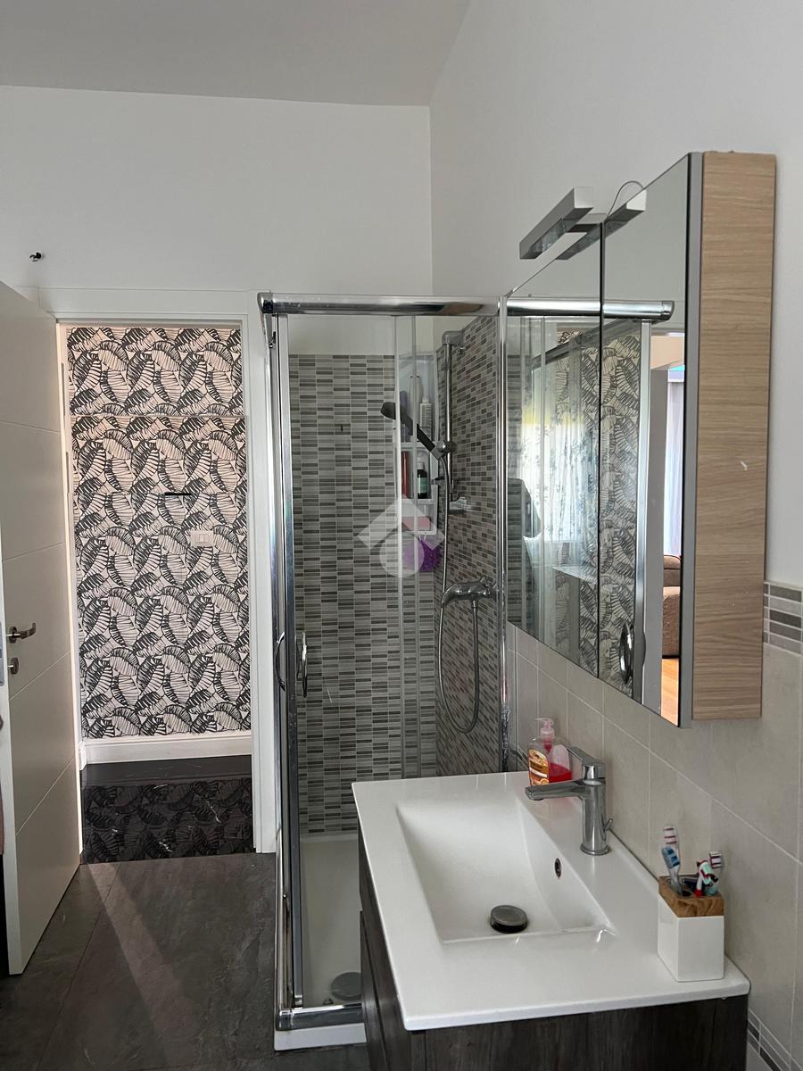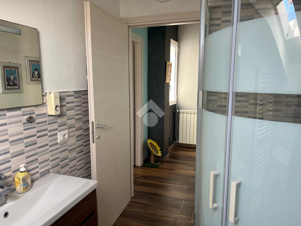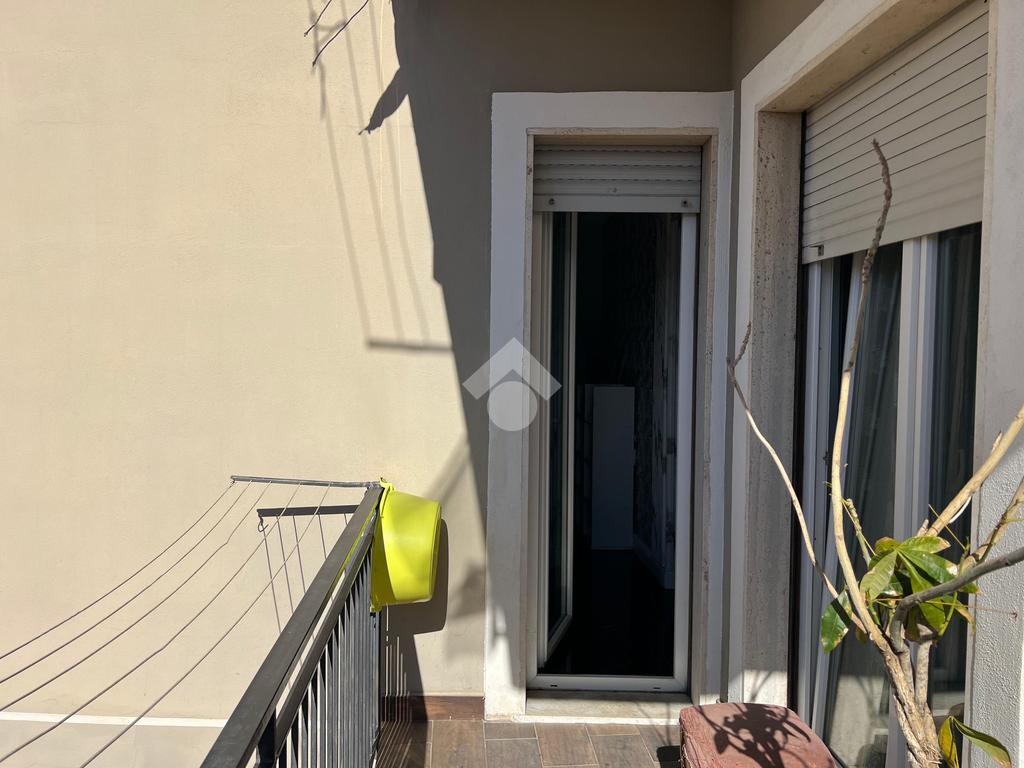 L'immobile: porzione di palazzetto con al piano terra garage e scala d'accesso, il piano primo appartamento vani 4 oltre accessori, al piano secondo due mansarde con terrazzi ristrutturato, oltre gli impianti elettrico e idrico moderni, anche Fancoil, condizionatori e impianto di riscaldamento autonomo, autoclave con riserva d'acqua, telecamere, luci d'emergenza e porte blindate. L'immobile è versatile e si presta come investimento, infatti le due mansarde che hanno accessi indipendenti dalla scala, sono già inserite nel circuito come B&B.
