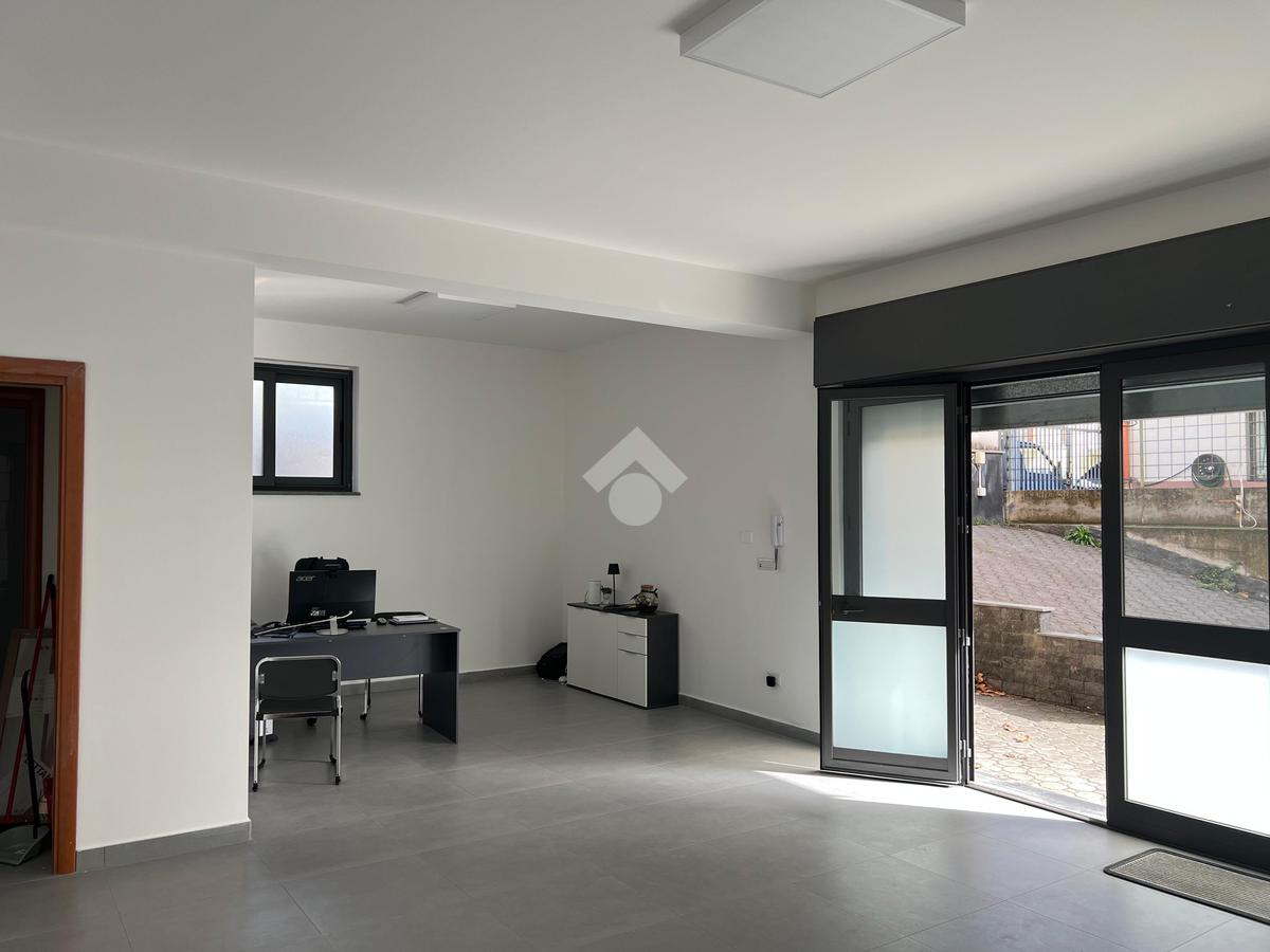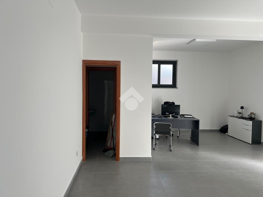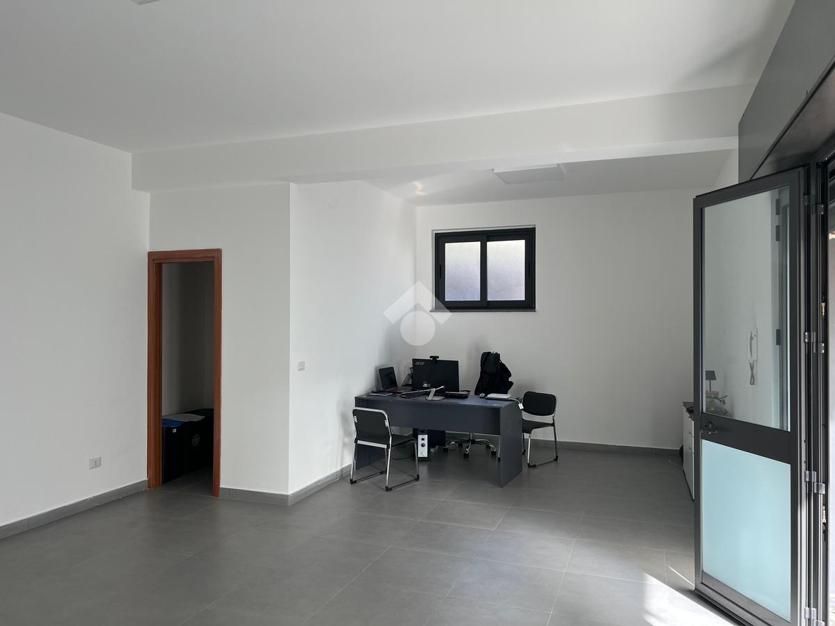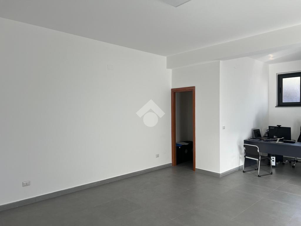 L'immobile: Posto al piano seminterrato, l'accesso è da un ingresso comune alle abitazioni sovrastanti, dalla corsia condominiale si accede all'ufficio che è composto da un unico ambiente con una finestra che da sul lato strada e illumina gli ambienti.Dall'ambiente, l'anti bagno e il bagno, inoltre una porta dà su un ambiente sfruttabile come deposito o magazzino. La pavimentazione è in grès porcellanato, gli impianti sono allo stato originario, quindi a norma. Già installato un impianto di luci di emergenza e predisposizione per l'allarme.