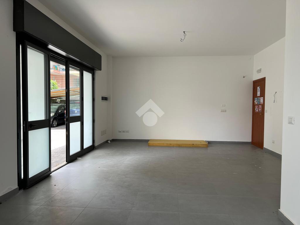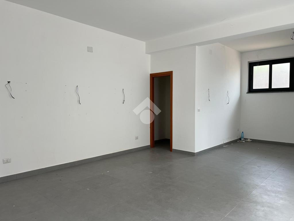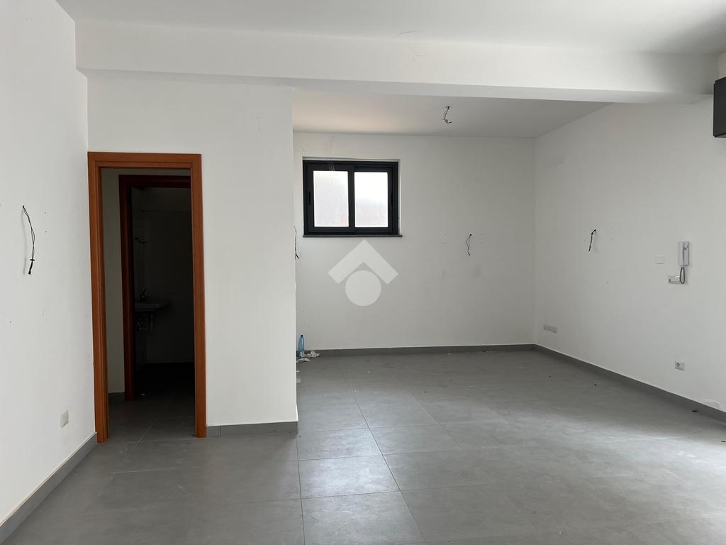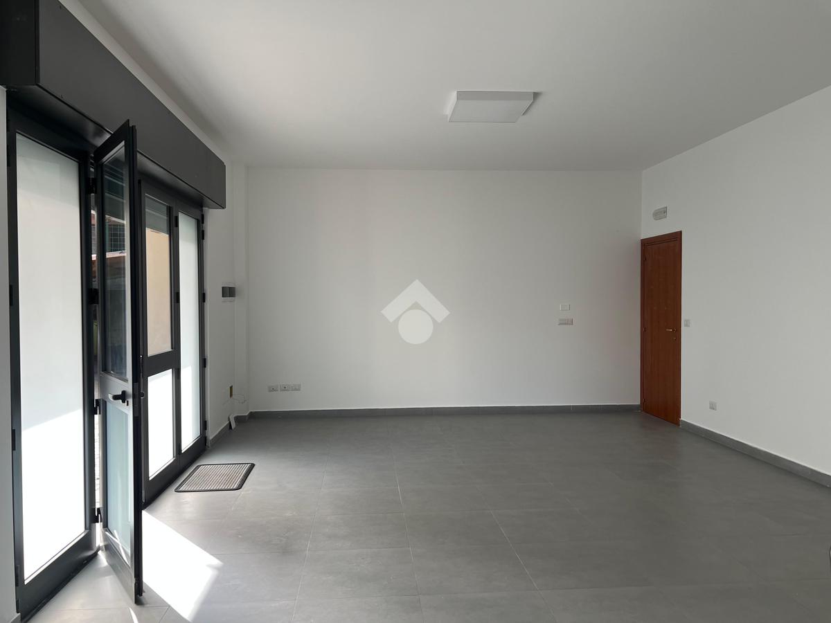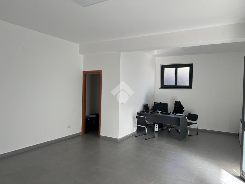 L'immobile: Posto al piano seminterrato, l'accesso è da un ingresso comune alle abitazioni sovrastanti, dalla corsia condominiale si accede all'ufficio che è composto da un unico ambiente con una finestra che da sul lato strada e illumina gli ambienti.Dall'ambiente, l'anti bagno e il bagno, inoltre una porta dà su un ambiente sfruttabile come deposito o magazzino. La pavimentazione è in grès porcellanato, gli impianti sono allo stato originario, quindi a norma. Già installato un impianto di luci di emergenza e predisposizione per l'allarme.