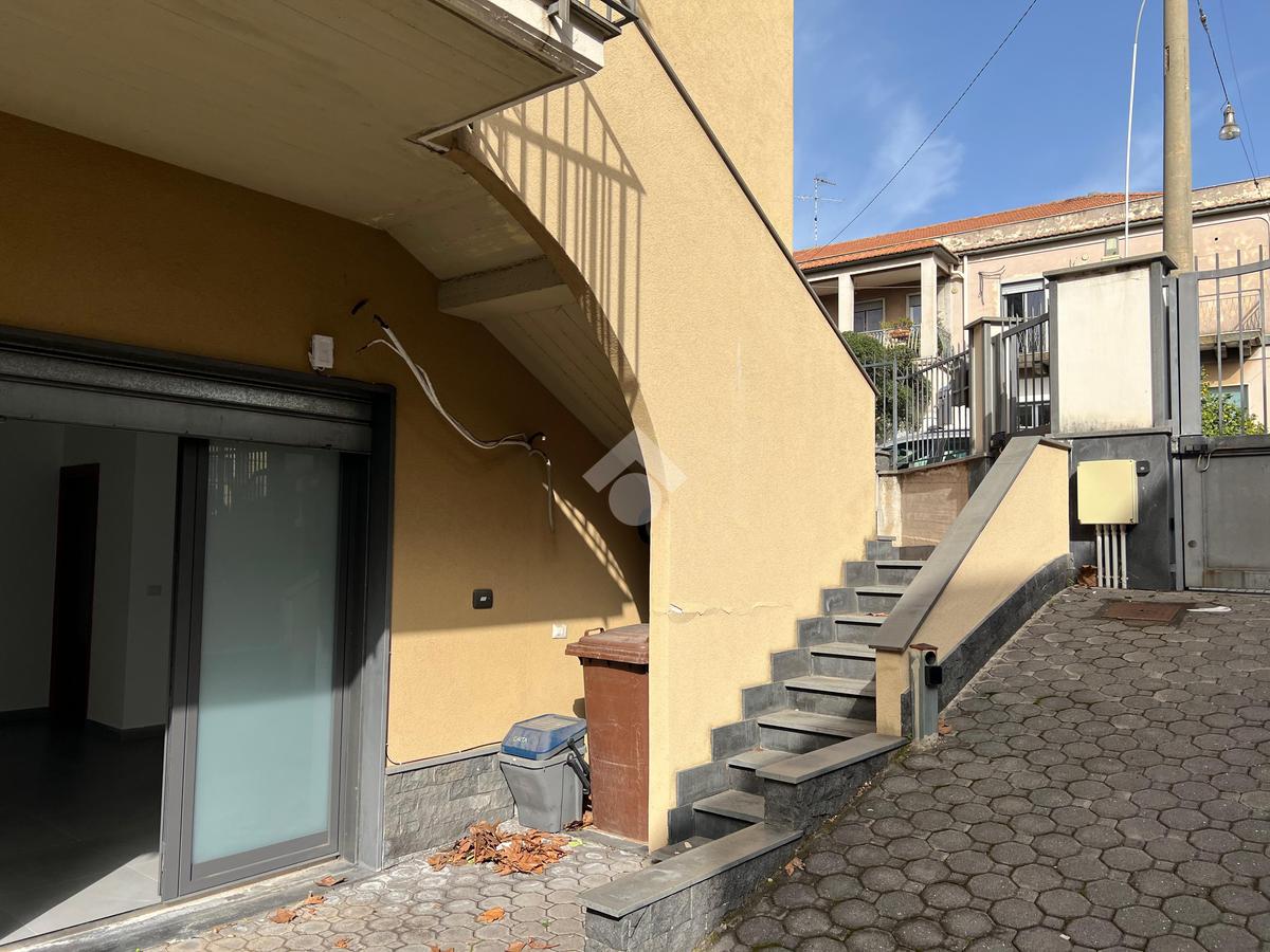 Il Condominio: Costruito circa 14 anni fa, è composto da due unità abitative oltre l'ufficio oggetto di locazione. Il condominio affaccia sulla piazza, situata all'angolo tra via Madonna della Libertà e via Mongibello.