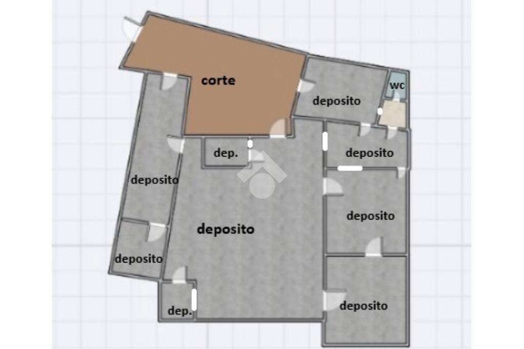 L'immobile: Deposito ampio con accesso camionabile, composto da più ambienti, di cui una parte adibita a ufficio con bagno. Internamente è composto da 8 ambienti separati con saracinesche, e un ampio cortile coperto centrale di 112 mq con un totale di 269 mq coperti oltre ad una corte d'ingresso di 76 mq. L'immobile catastalmente è un deposito, ma grazie agli ampi ambienti separati e le altezze camionabili e il terrazzo sovrastante con una zona che è possibile adibire ad uffici, si presta a diversi usi per attività commerciali.