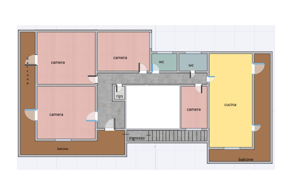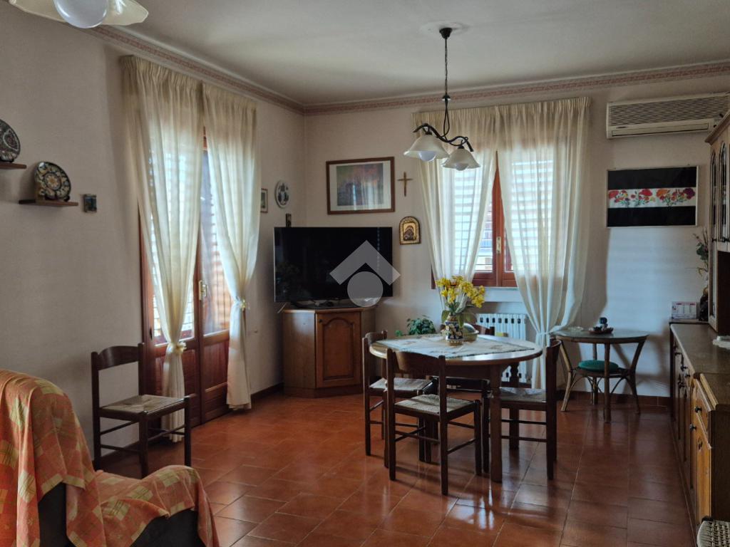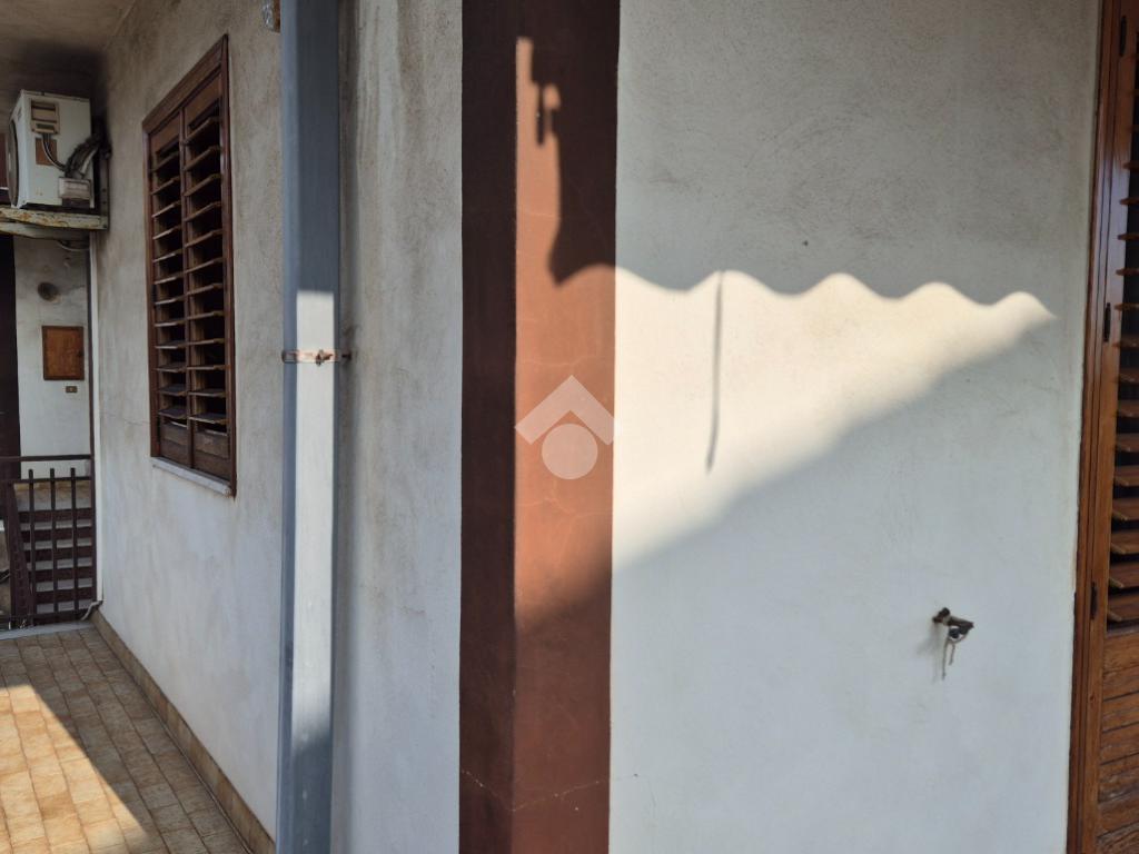 L'appartamento: primo piano con doppio ingresso, uno da vano scale comune più ingresso indipendente da scale esterne al balcone della casa. Salone spazioso, tre camere da letto e una cucina soggiorno ampia, bagno e lavanderia con servizio entrambi finestrati, oltre al ripostiglio, tutti gli ambienti sono disimpegnati da un corridoio. Le condizioni interne sono buone, impianto elettrico seppur risalente alla costruzione ma certificato, i bagni originali alla costruzione, pavimento per buona parte in marmo, infissi in legno monovetro. In generale la casa si presenta in ottime condizioni. Compreso nella vendita un posto auto di proprietà.