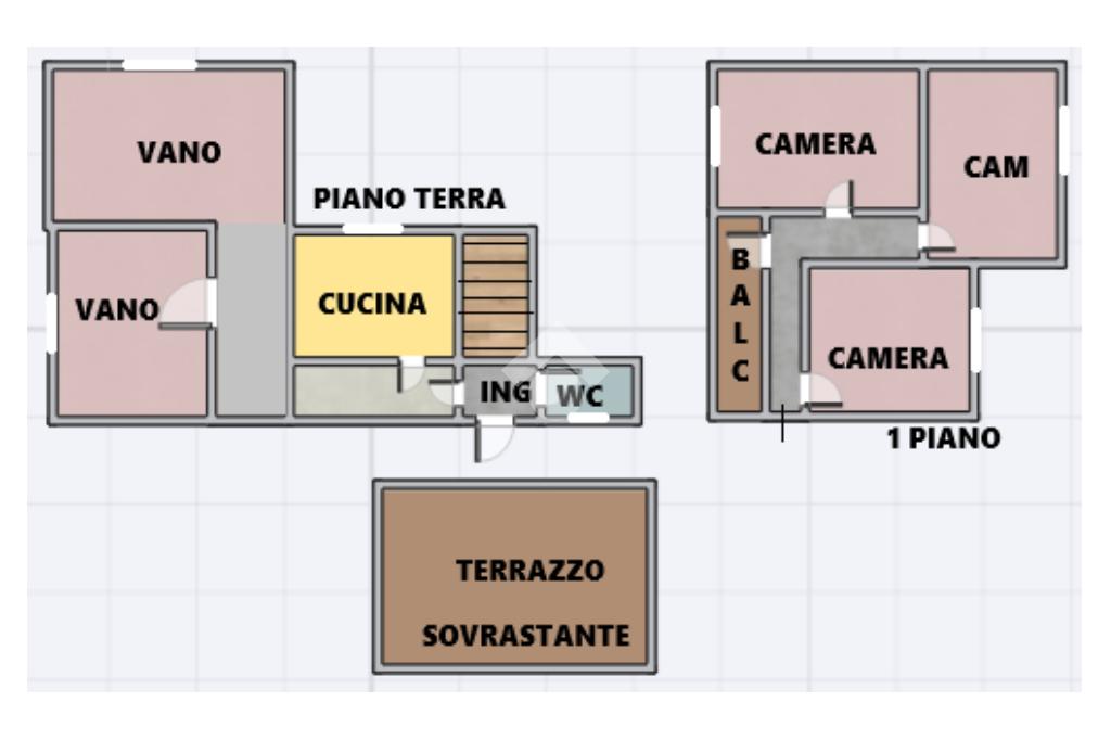 Il palazzetto: unica soluzione indipendente su due livelli con piano terra due vani, cucina E bagno, oltre al disimpegno di ingresso con vano scala di collegamento al piano primo. La casa al piano primo fa da zona notte con tre vani balconati su entrambi le esposizioni nord e sud. Lo stesso vano scala si collega alla copertura con vano deposito e lastrico solare panoramico vista etna e mare. Le condizioni interne son da buone, infissi in legno mono vetro, da rifare gli impianti, buona la pavimentazione in marmo, da rivedere il lastrico solare.