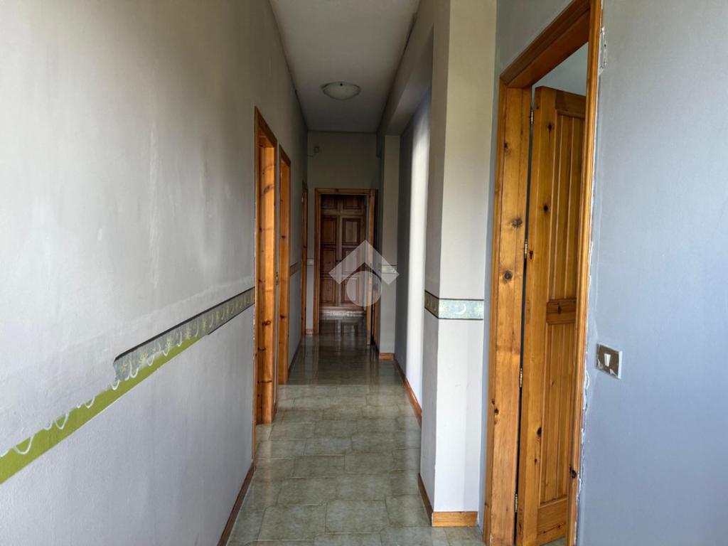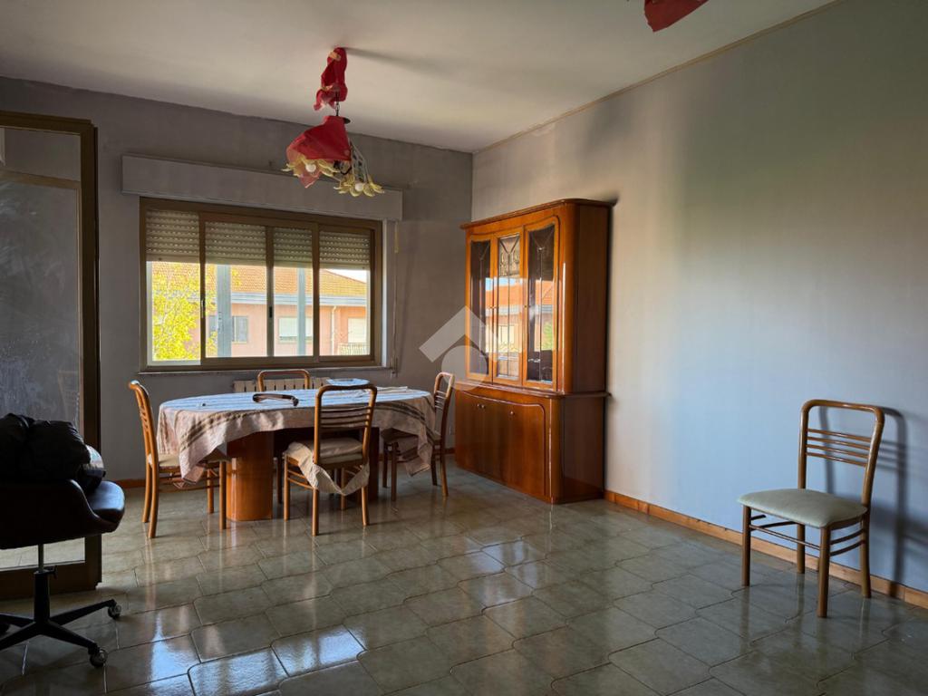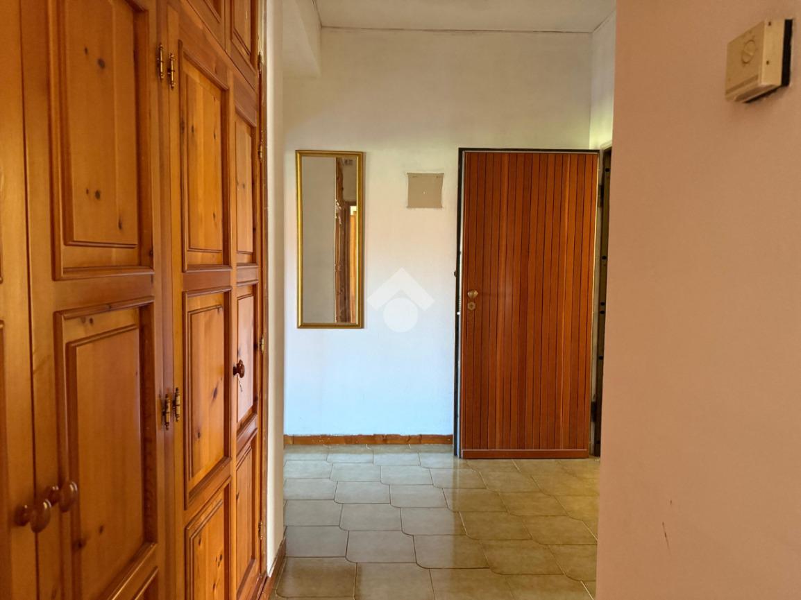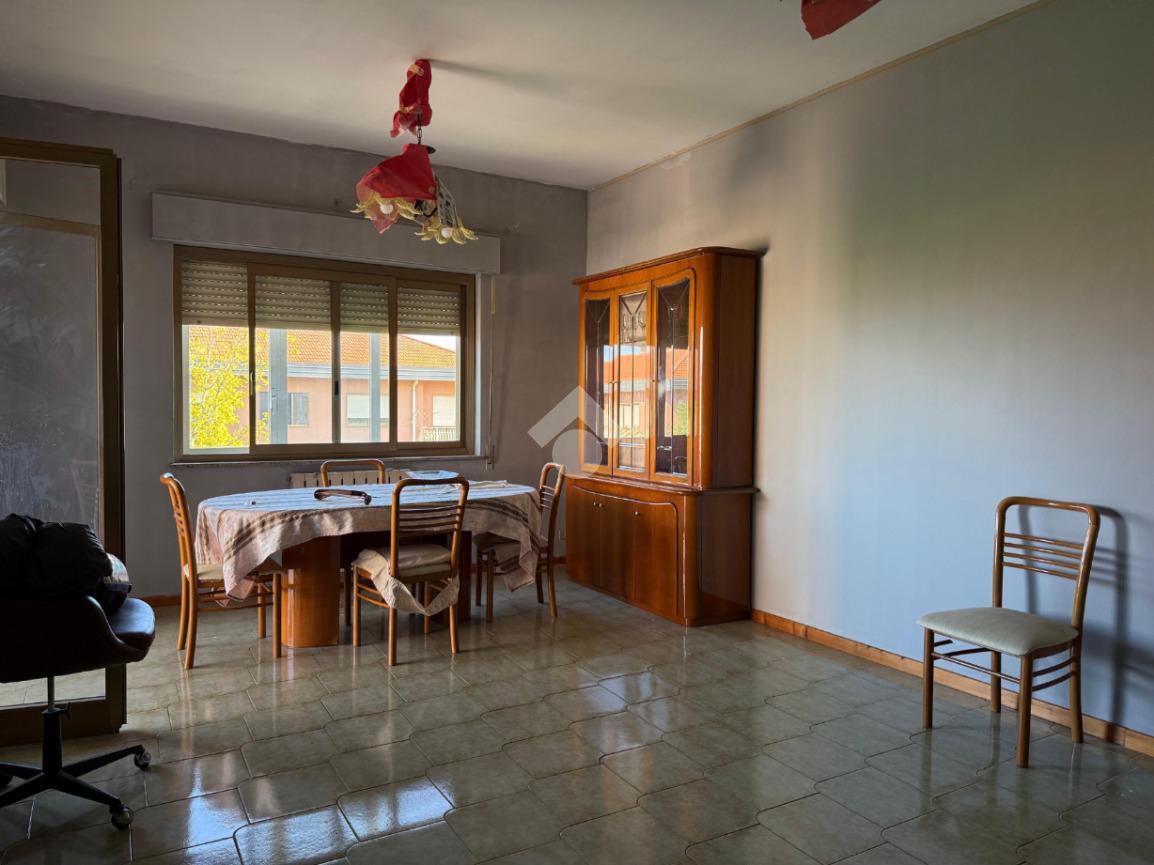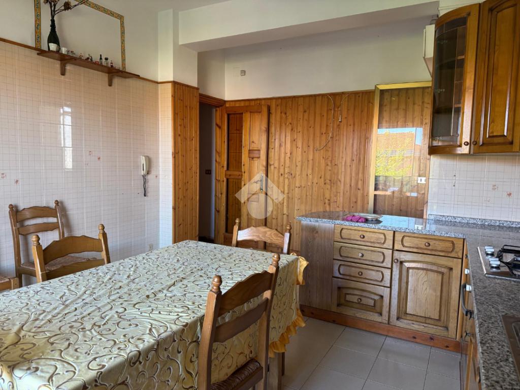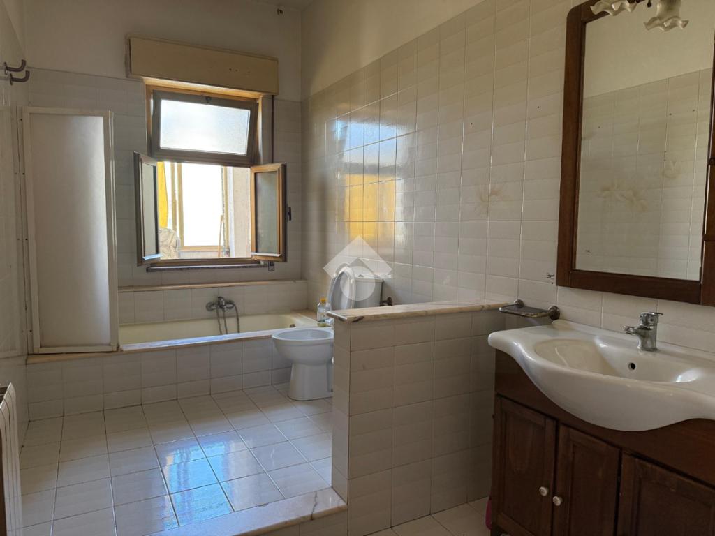L'appartamento: al secondo piano ascensorato, l'ingresso è su disimpegno che divide la cucina dal soggiorno, entrambe hanno affaccio su terrazzo a livello di mq 13 esposto ad Est, con vista mare. Ulteriori tre vani ed il bagno a completare gli spazi interni dell'immobile disimpegnati da un corridoio. Un balcone a giro abbraccia il resto degli ambienti, con vista Etna, esposto a Nord ed Ovest, in parte verandato adibito attualmente a lavanderia. L'immobile si presenta in buone condizioni, necessari solo alcuni interventi di rimodernamento. Gli impianti sono originari del'epoca di costruzione, gli infissi in alluminio monovetro, riscaldamenton autonomo. Incluso nella vendita un garage di mq 25.