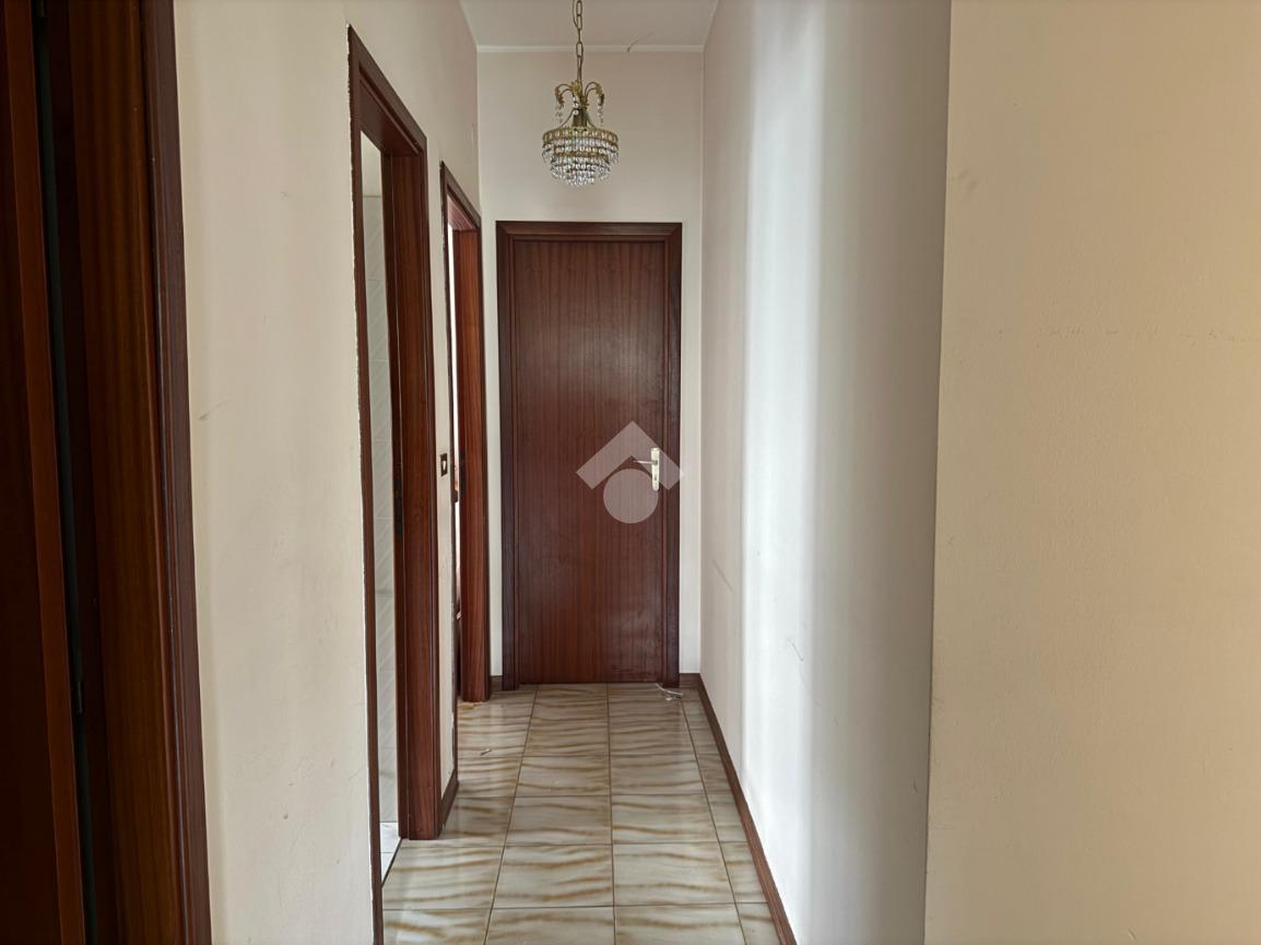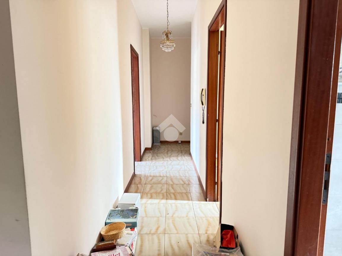 L'immobile: al piano rialzato con ingresso su disimpegno e corridoio che dividono tutti gli ambienti di casa. Tre le camere, la cucina, un bagno e una lavanderia con servizio a completare gli spazi interni dell'immobile. Dalla cucina si accede alla parte di balcone chiusa a veranda con struttura in alluminio e vetro, a completare gli spazi esterni il balcone a giro, esposto a Nord, Sud ed Ovest, ed il cortile carrabile di proprietà in parte piantumato con piante ornamentali. Le condizioni sono da rimodernare, da rivedere gli impianti, il riscaldamento è autonomo, gli infissi in alluminio monovetro. A completare la vendita un garage di 19 mq.