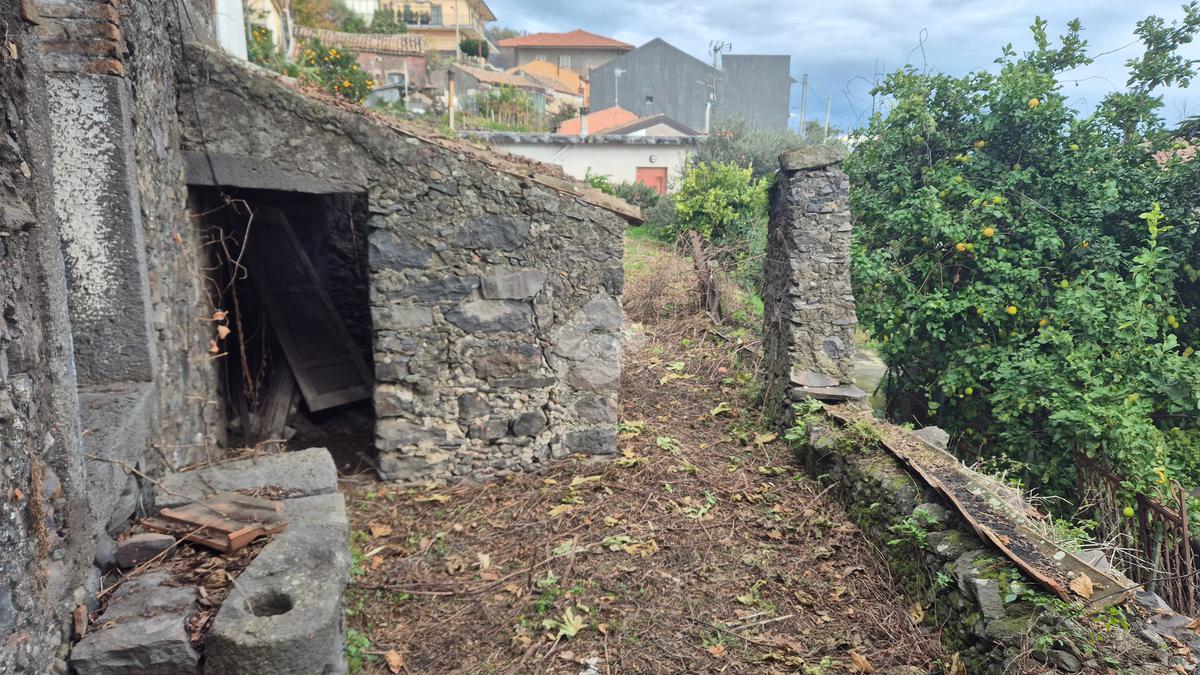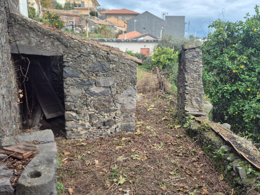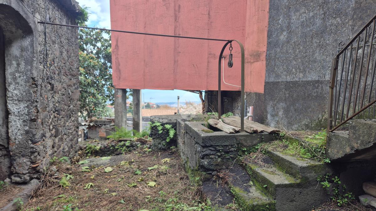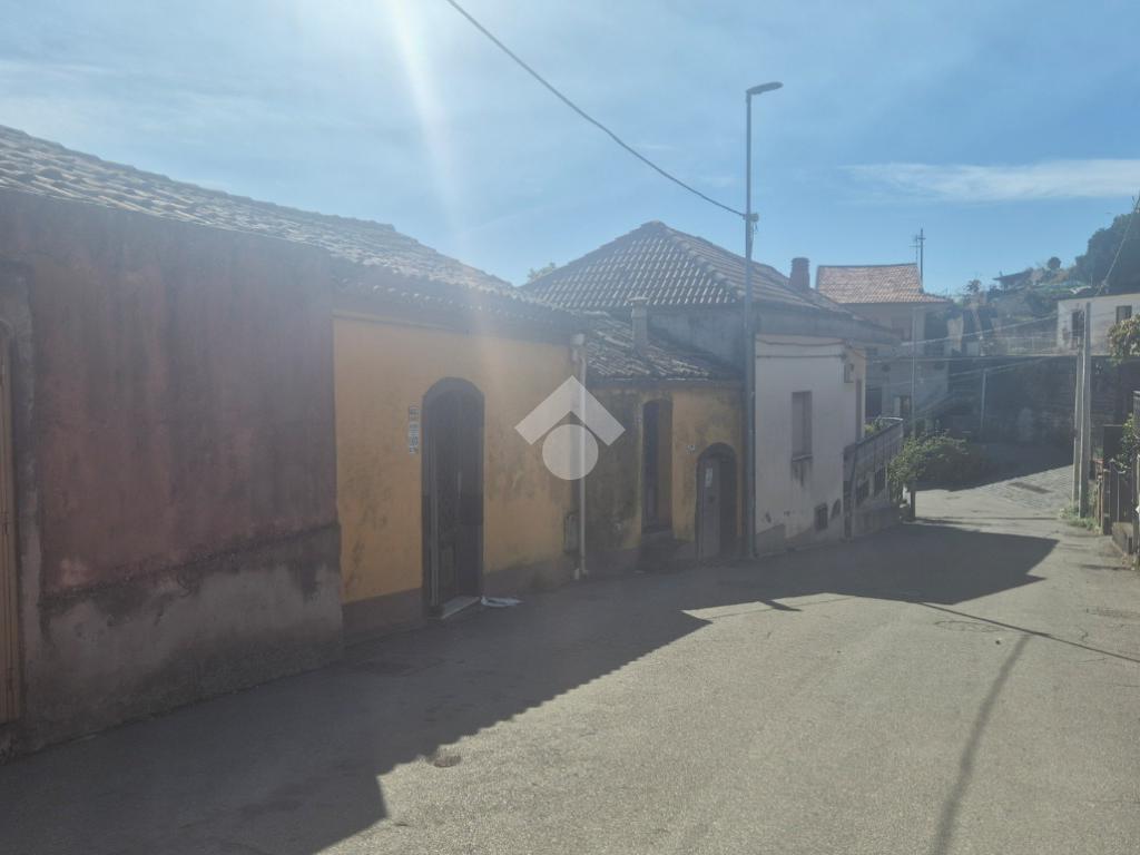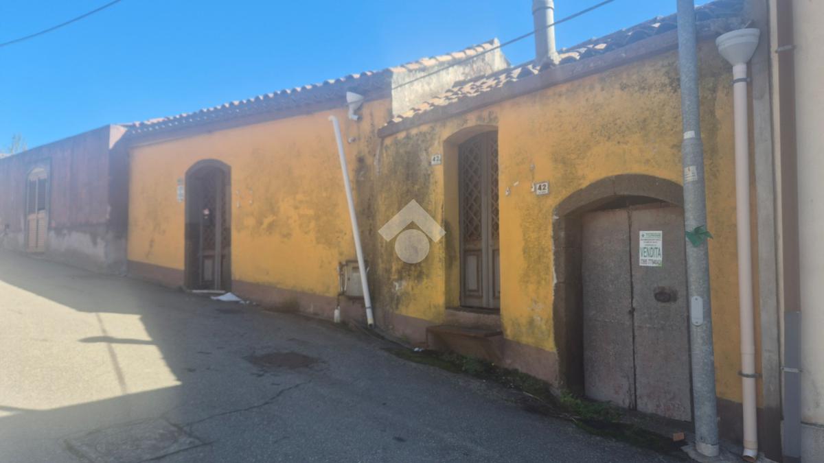 La casa: indipendente al piano terra con più ingressi sulla via catania, un vano comodo, altro vano oltre cucina e bagnetto. Al piano sotto il livello strada, con ulteriore accesso anche dalla strada oltre che dalla scala di collegamento dal cortile, con esposizione sul giardino di circa mq 180 di pertinenza della casa, due vani cantina ampi in stile rustico ma da ristrutturare, altro piccolo vano e cortile giardino con cisterna di proprietà. L'immobile necessita di ristrutturazione, permette modifiche interne.