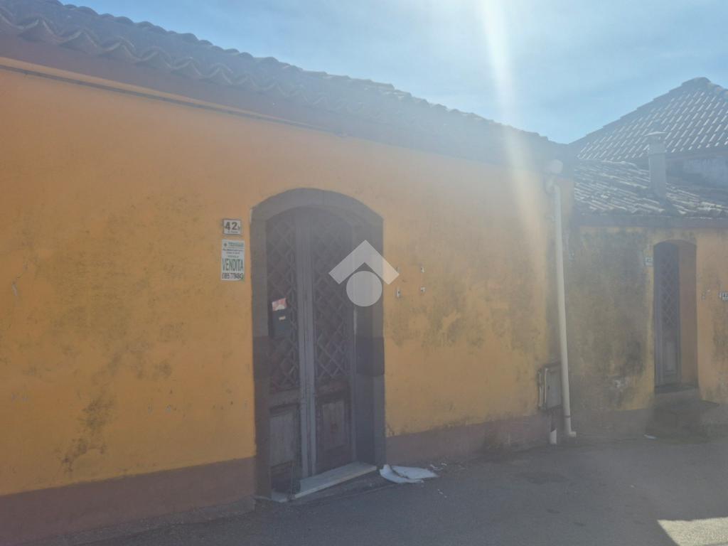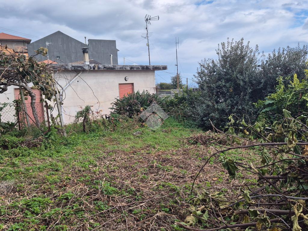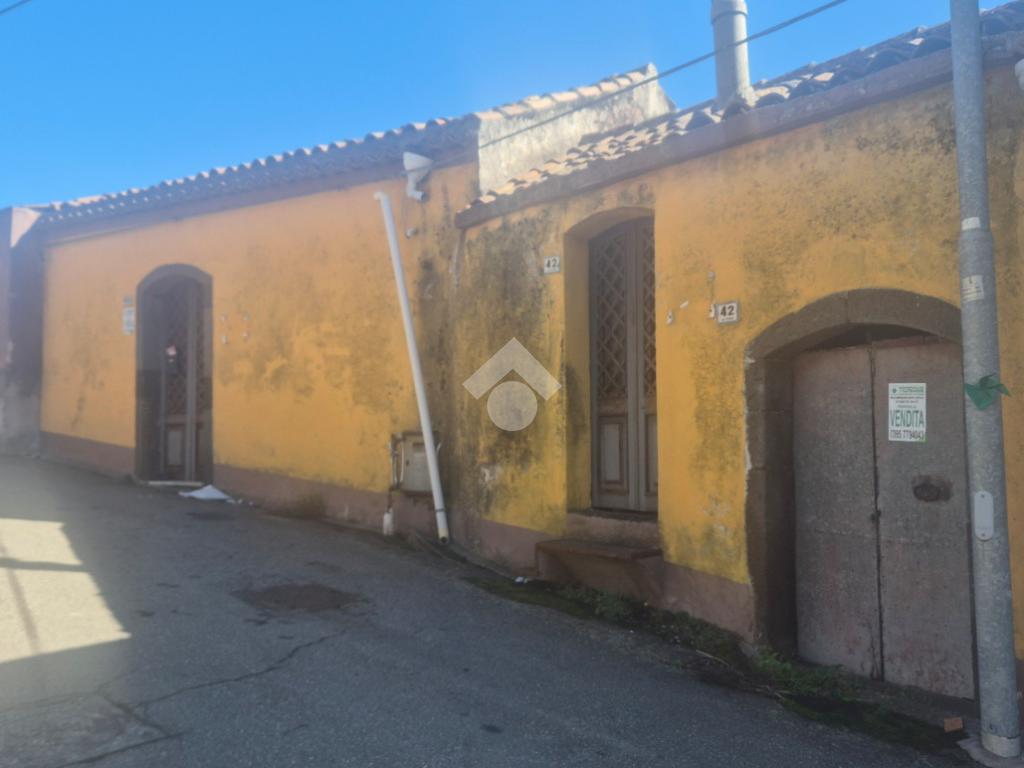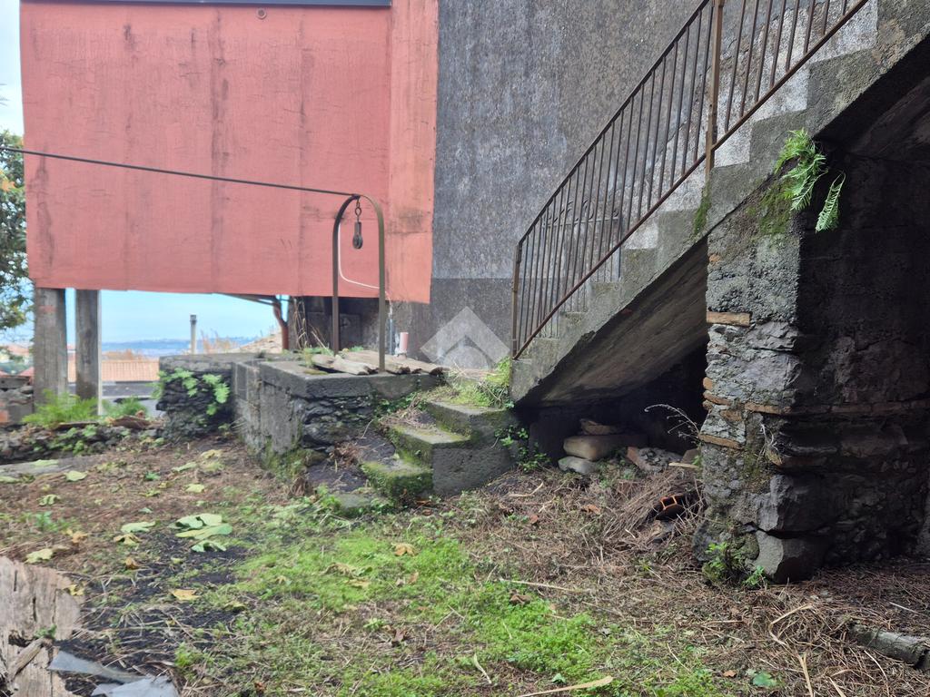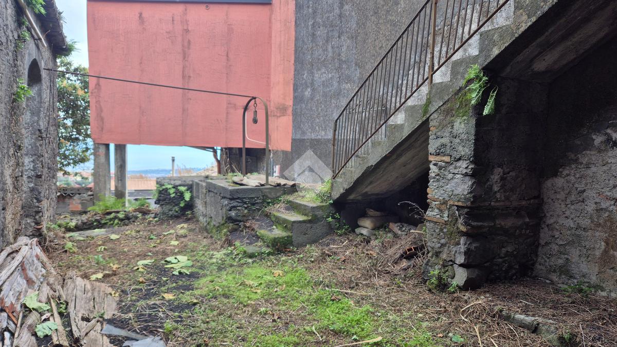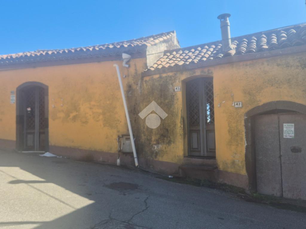 La casa: indipendente al piano terra con più ingressi sulla via catania, un vano comodo, altro vano oltre cucina e bagnetto. Al piano sotto il livello strada, con ulteriore accesso anche dalla strada oltre che dalla scala di collegamento dal cortile, con esposizione sul giardino di circa mq 180 di pertinenza della casa, due vani cantina ampi in stile rustico ma da ristrutturare, altro piccolo vano e cortile giardino con cisterna di proprietà. L'immobile necessita di ristrutturazione, permette modifiche interne.